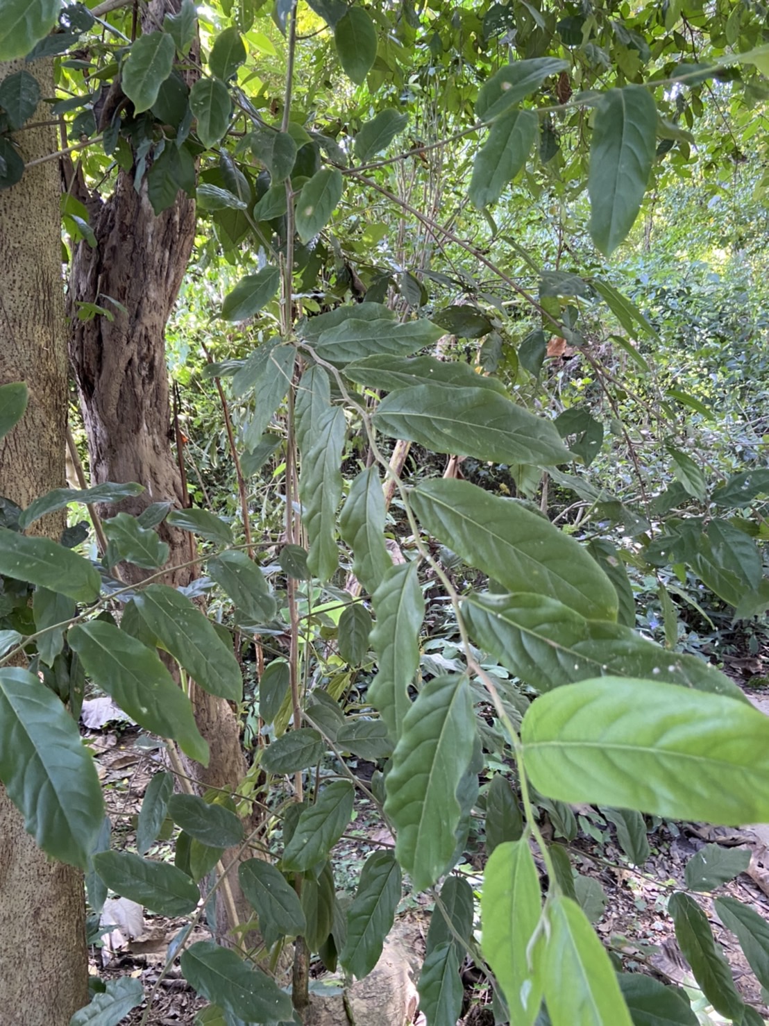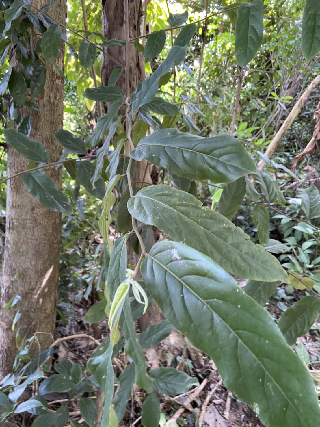 พรรณไม้ยืนต้นไม่ผลัดใบขนาดเล็กถึงกลาง มีความสูงได้ประมาณ 5-15 เมตร รูปทรงโปร่ง ออกกิ่งตั้งฉากกับลำต้น ลำต้นเปลาตรง มีลายสีขาวปนดำ คล้ายตัวแลนหรือตะกวด บางท้องที่จึงเรียกว่า “คอแลน” เปลือกลำต้นค่อนข้างเรียบเป็นสีเทา สีน้ำตาลอ่อน หรือสีน้ำตาลเข้มแตกเป็นเกล็ดเล็ก ๆ มีขนสีน้ำตาลแดงทั่วไป กิ่งอ่อนมีขนสั้น หนานุ่ม สีน้ำตาลแดง มีน้ำยางสีขาวใส ส่วนเนื้อไม้เป็นสีน้ำตาลอ่อนเกือบขาว ต้นที่มีอายุมาก โคนต้นมักมีพูพอน มีเขตการกระจายพันธุ์ในภูมิภาคอินโดจีน มาเลเซีย อินโดนีเซีย จนถึงหมู่เกาะในภูมิภาคเมลานีเซีย ในประเทศไทยพบขึ้นทุกภาคของประเทศ โดยมักขึ้นตามป่าเบญจพรรณ ป่าเต็งรัง ป่าดิบ และป่าทุ่งทั่วไปจนถึงพื้นที่ความสูงจากระดับน้ำทะเลประมาณ 1,200 เมตร ใบเป็นใบเดี่ยว ออกเรียงสลับ ลักษณะของใบเป็นรูปรียาวขอบขนานหรือรูปไข่แกมรูปขอบขนาน ปลายใบแหลมหรือเรียวแหลม โคนใบมนกว้าง มักเว้าเล็กน้อยที่รอยต่อก้านใบ ส่วนขอบใบหยักเป็นถี่ตื้น ๆ แผ่นใบมีขนาดกว้างประมาณ 3-6 เซนติเมตร และยาวประมาณ 8-13 เซนติเมตร เนื้อใบหนา แผ่นใบเรียบ แผ่ หลังใบเรียบเกลี้ยงเป็นมันหรือมีขนเล็กน้อยที่เส้นกลางใบ ส่วนท้องใบมีขนสั้นขึ้นปกคลุมทั่วไป เส้นกลางใบเรียบหรือเป็นร่องทางด้านบน ด้านล่างนูนเห็นได้ชัด เส้นแขนงใบมีข้างละ 8-14 เส้น แผ่นใบมีต่อมเป็นจุดและขีดสั้น ๆ กระจัดกระจายทั่วไป เมื่อส่องดูกับแสงสว่างจะโปร่งแสงก้านใบสั้น ยาวได้ประมาณ 0.6-1.2 เซนติเมตร มีขนสั้นนุ่มหรือเกือบเกลี้ยง หูใบมีขนาดเล็ก ลักษณะเป็นรูปสามเหลี่ยม ขนาดประมาณ 1.5 มิลลิเมตร ร่วงง่าย ออกดอกเป็นกระจุก กระจุกละ 2-8 ดอก โดยจะออกตามซอกใบที่หลุดร่วงไปแล้ว ก้านดอกยาวประมาณ 5-6 มิลลิเมตร มีขนสั้นนุ่ม ดอกเป็นดอกแบบสมบูรณ์เพศสีขาวหรือสีเหลืองแกมเขียว ใบประดับมีจำนวนมาก มีขนสั้นนุ่ม ไม่มีกลีบดอก มีแต่กลีบเลี้ยงดอกขนาดเล็กมี 5 กลีบ กลีบเลี้ยงเป็นสีเขียว รูปงองุ้ม แต่ละกลีบจะไม่เท่ากัน ด้านนอกมีขนแน่น ส่วนด้านในเกลี้ยง ดอกมีเกสรเพศผู้จำนวน 8-10 อัน ก้านชูอับเรณูยาวไม่เท่ากัน มีขนสั้นนุ่มเล็กน้อยหรือเกลี้ยง ตรงกลางมีแกนเป็นรูปเจดีย์คว่ำ เกสรเพศผู้ที่เป็นหมัน เป็นรูปขอบขนาน มีขนหนาแน่น รังไข่อยู่เหนือวงกลีบ ลักษณะเป็นรูปกลมเกลี้ยง หรือมีขนยาวห่าง มี 1 ช่อง ก้านเกสรเพศเมียสั้น ออกดอกในช่วงระหว่างเดือนมีนาคมถึงเดือนพฤษภาคม ผลเป็นผลแบบมีเนื้อ เมื่อแห้งจะแตกออก ลักษณะของผลเป็นรูปทรงกลมรีหรือรูปไข่ มีขนาดกว้างประมาณ 1.5-2 เซนติเมตร และยาวประมาณ 2.5-5 เซนติเมตร ผิวผลมันเรียบ เปลือกผล